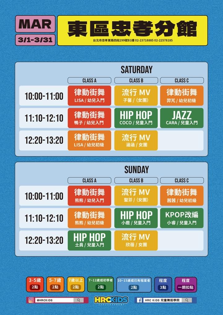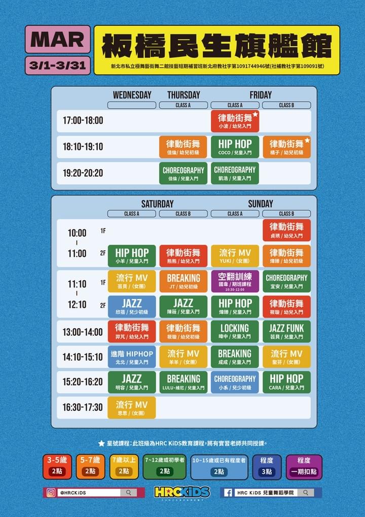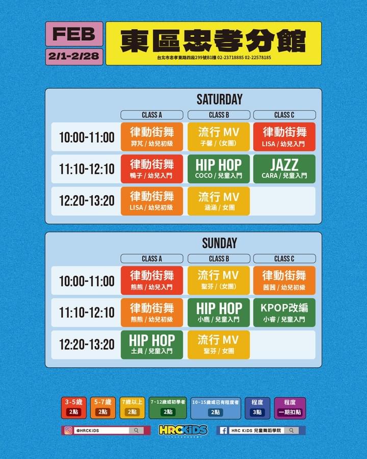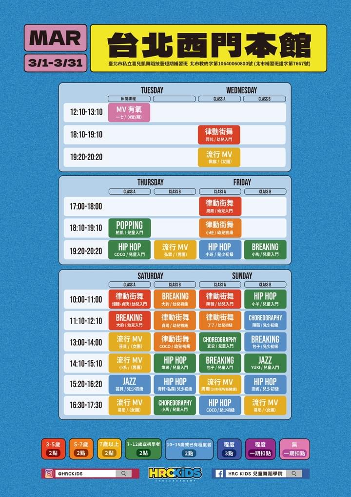 台北西門館課表
